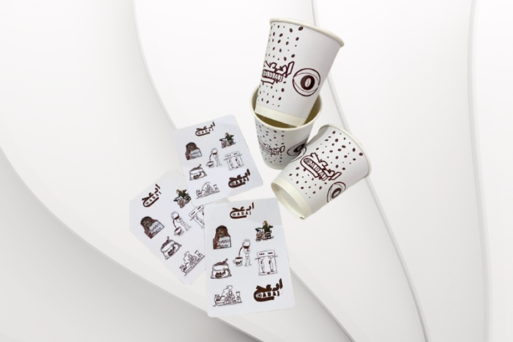 الخامة: أكياس قهوة وملصقات وأكواب مرفقة