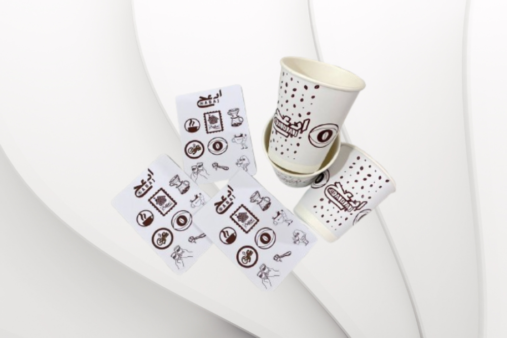الخامة: أكياس قهوة وملصقات وأكواب مرفقة